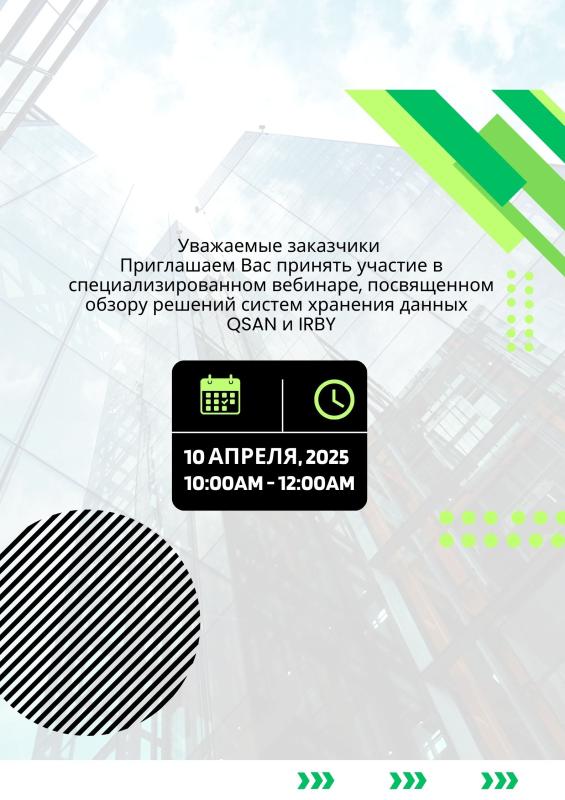 Компания IRBY, в сотрудничестве с компанией QSAN, приглашают вас на вебинар, посвящённый углублённому изучению передовых решений для хранения данных.